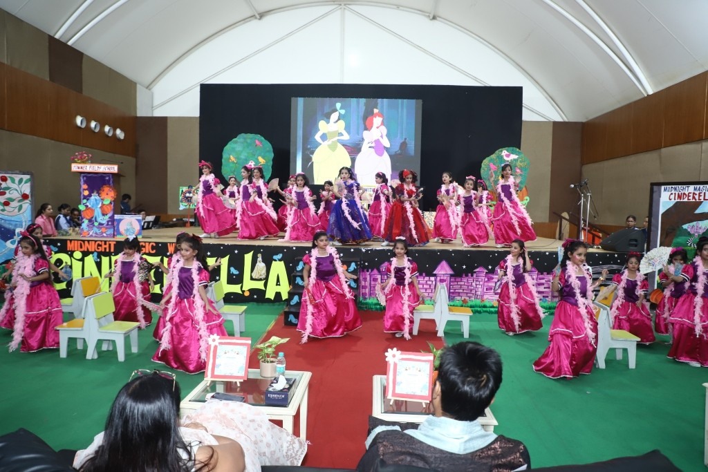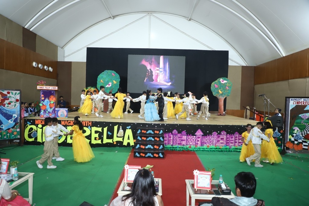 As the curtains drew to a close, the hall echoed with appreciation and pride for the budding performers who beautifully captured the spirit of Cinderella. The Guest of Honour highly appreciated the efforts of the students and teachers and lauded the flawless execution of the program. Their encouraging words added to the joy and pride of the evening. The memorable evening concluded with a Vote of Thanks by the Academic Coordinator Ms. Shweta Dimri.
